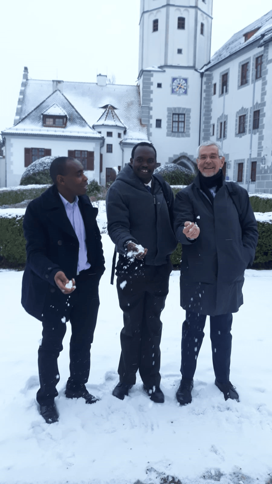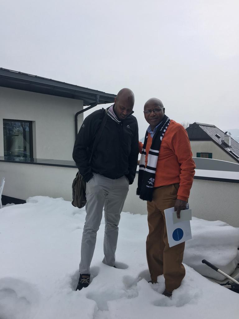 Feeling the softness of snow after the conference in Neu -Ulm University: from right to left Prof. Dr. Thomas Beyer and Dr.Paul Sang dean business school Kenyatta University.
